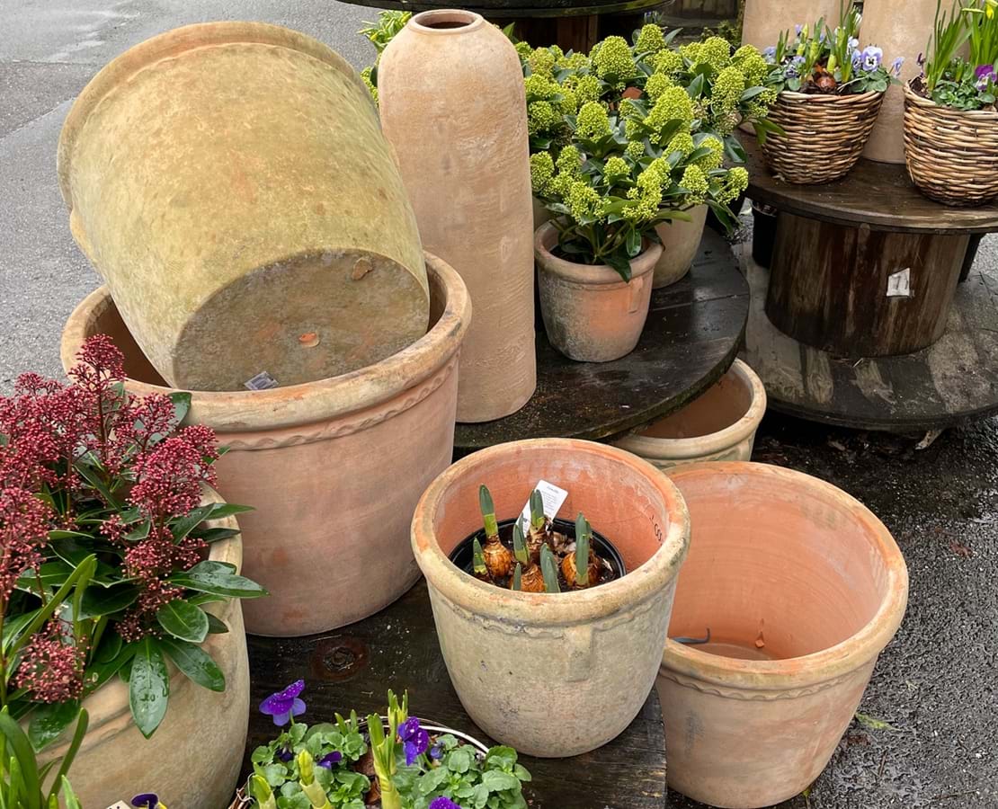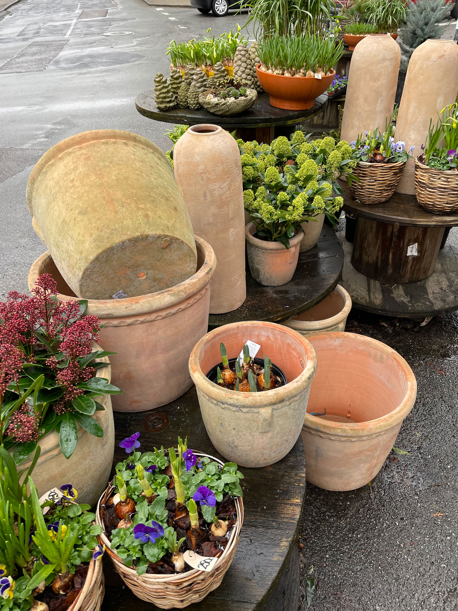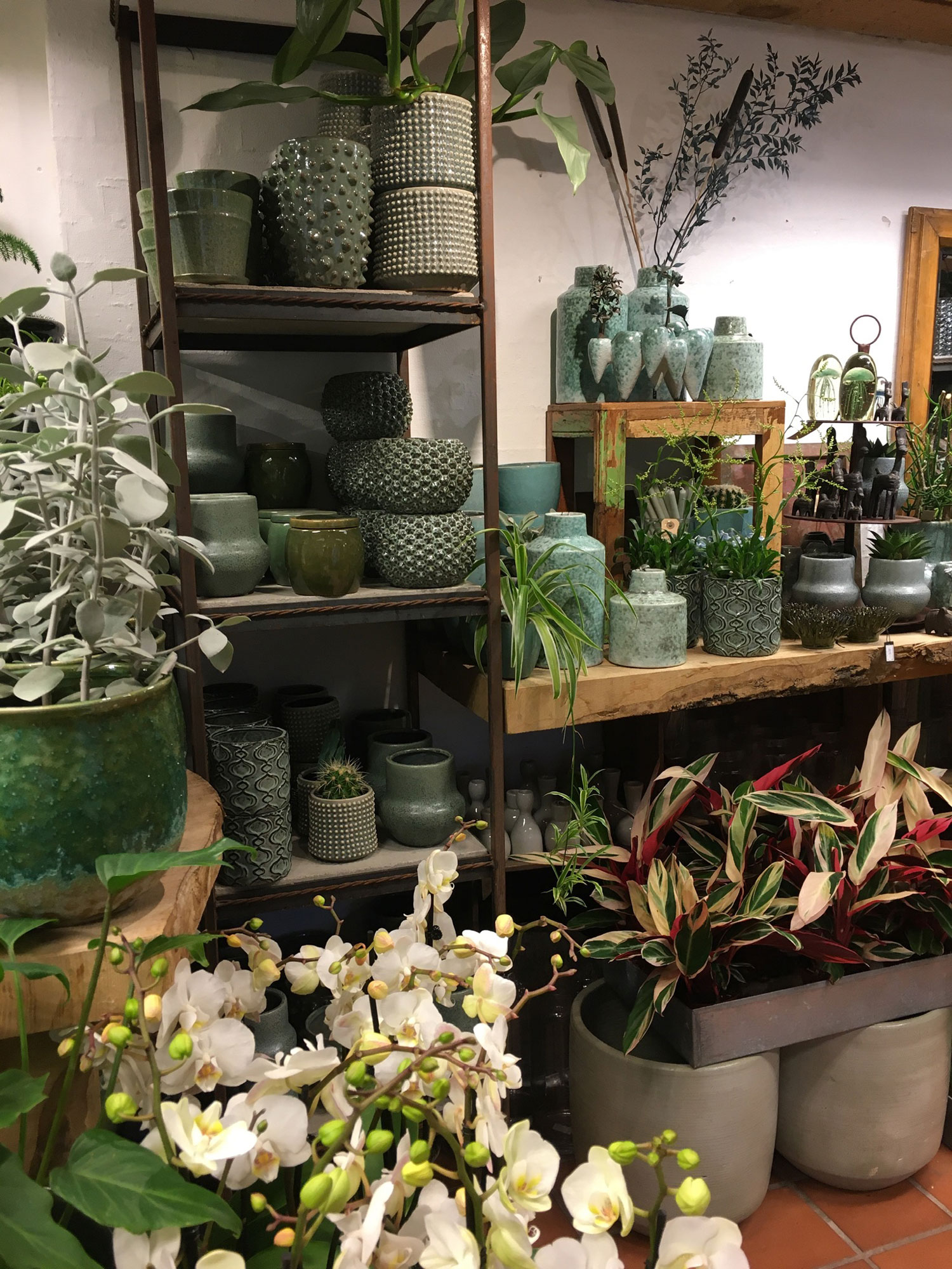 Vi har altid et bredt udvalg af friske afskårne blomster, mange forskellige planter, skjulere, kurve og glas i tidens trend.