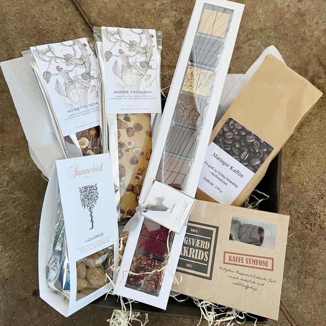 En lækker gavekurv skaber altid glæde. vi pakker kurven med lækkert chokolade. Vi forhandler chokolade fra Summerbird og Frellsen, samt Bagsværd Lakrids.